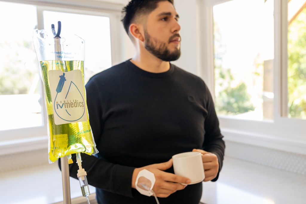 Alcohol is a diuretic that accelerates fluid and electrolyte loss, but the physiological damage extends well beyond dehydration. Alcohol depletes thiamine (B1), B6, folate, Vitamin C, magnesium, and glutathione, none of which plain water replaces. Magnesium deficiency affects up to 50% of patients hospitalized for alcohol-related reasons. Glutathione, the liver’s primary antioxidant, gets oxidized and depleted by alcohol, which impairs the body’s ability to clear alcohol byproducts from circulation. A Mobile IV Medics hangover IV delivers saline, electrolytes, B-complex vitamins, glutathione, and optional anti-nausea and pain medication, addressing every layer of the hangover simultaneously. Most clients feel meaningful improvement within 30–60 minutes.